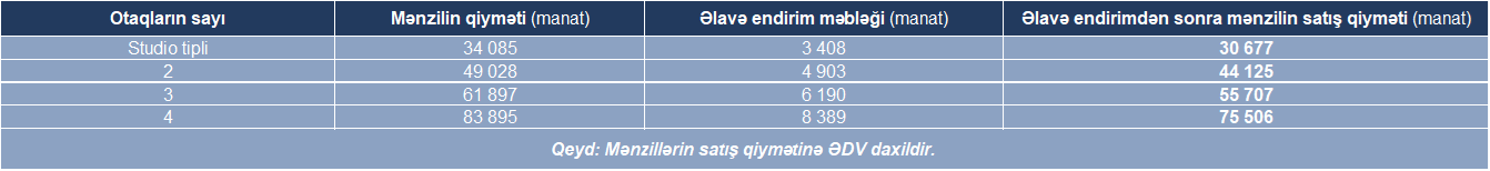 Qeyd edək ki, mənzillərin satış qiymətinə ƏDV daxildir.