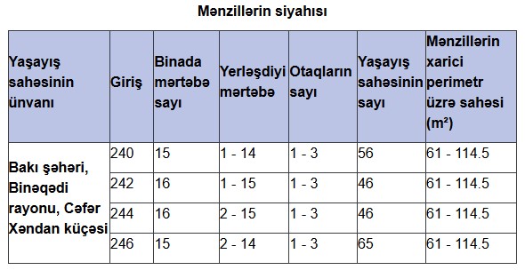 Yeni mənzillər vətəndaşların seçimi üçün 8 aprel 2025-ci ildən etibarən açıq olacaq. Vətəndaşlar təqdim olunan yaşayış sahələrinin siyahısı ilə bu keçid vasitəsilə tanış ola bilərlər.